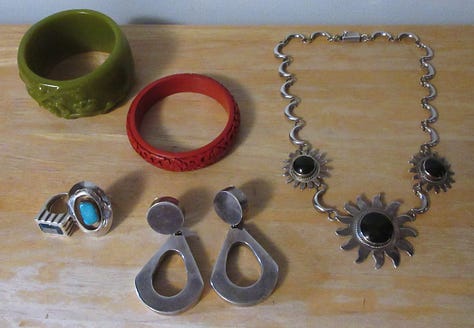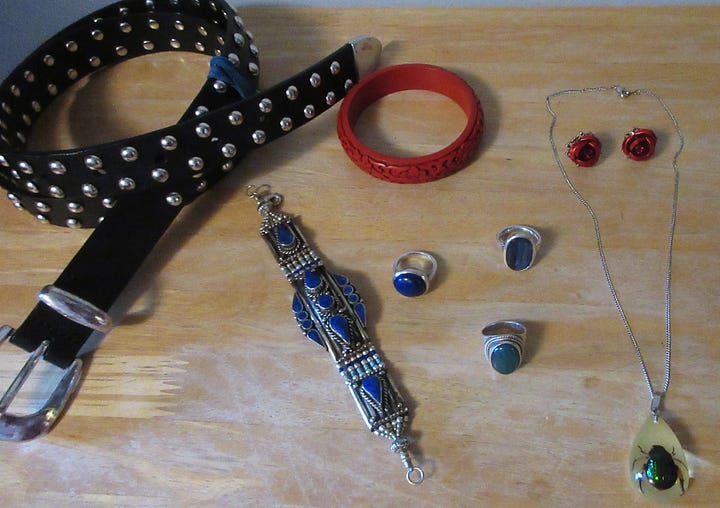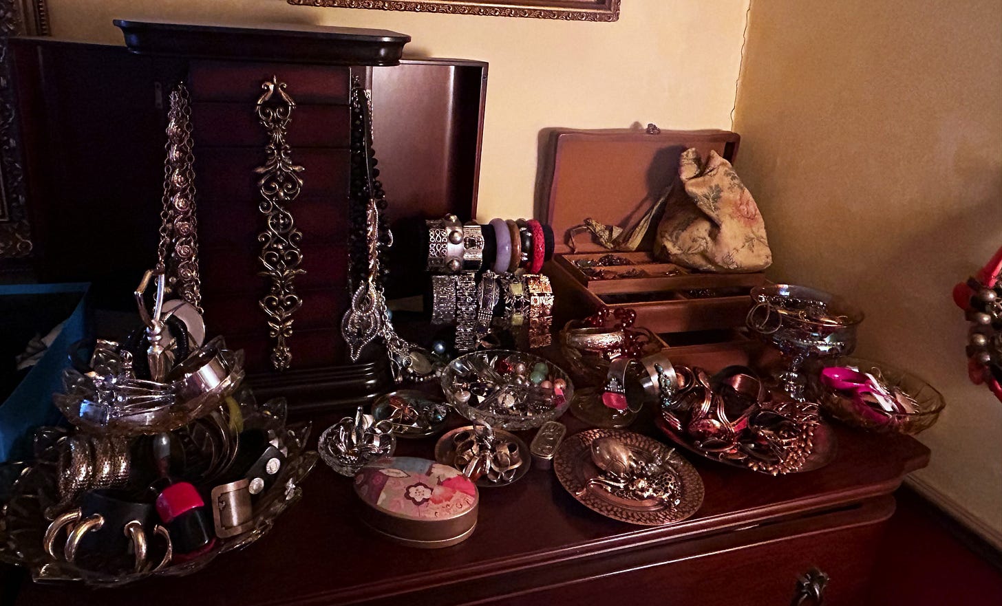 Things are grouped by type, eg. big bracelets, copper, Brutalist, small earrings, big earrings. I’m a very visual person, so I need to see everything or I forget I have it.