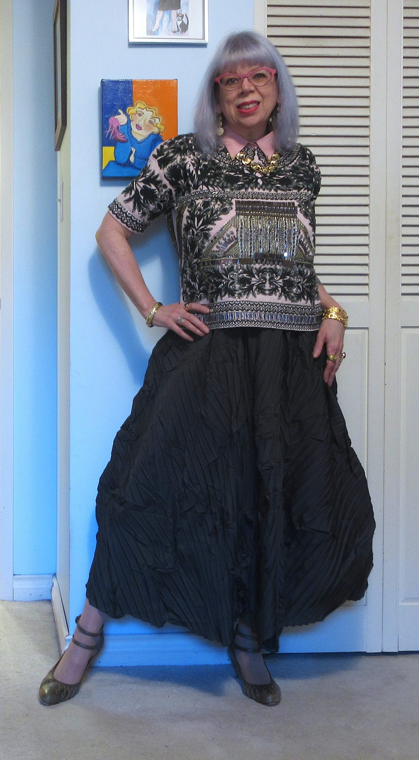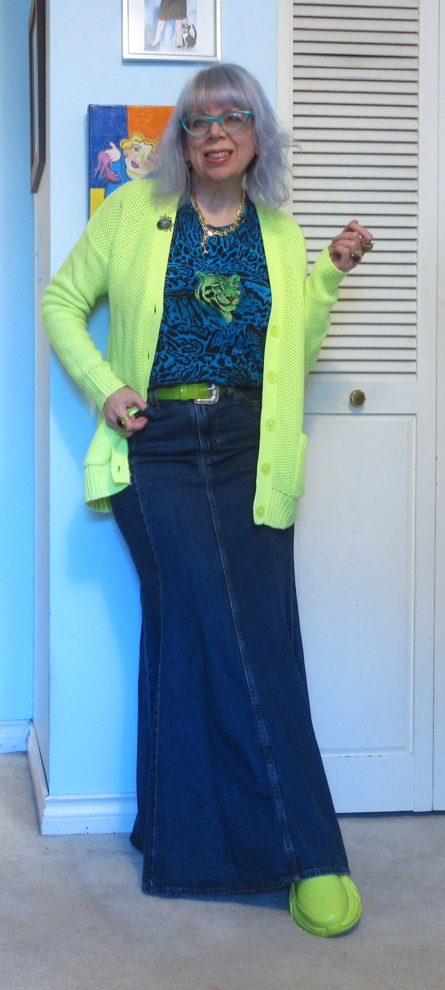 I’d had this outfit’s bones already set aside: the new-to-me silk Escada top, the jean skirt and the cardigan, but nothing else.