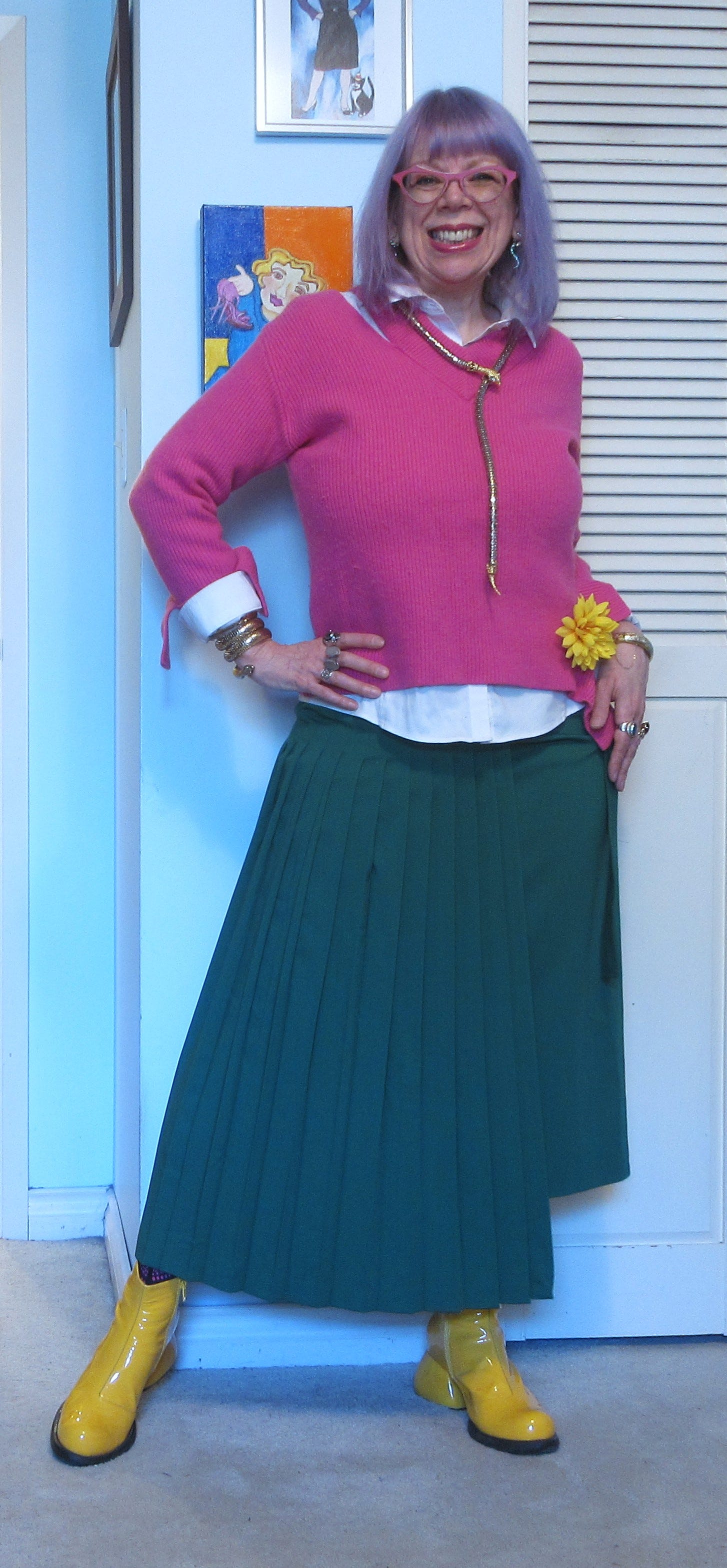 Hello, dear friends! Come on in, get out of the weather, find a seat and settle in. The world’s a scary place and I’m here to welcome you to a quiet little corner where we can hide and look at pretty things. You can count on mostly secondhand, lots of vintage, a plethora of colour, and not the kind of outfits you see on most people. Yeah, I’m a wacky Ge…
