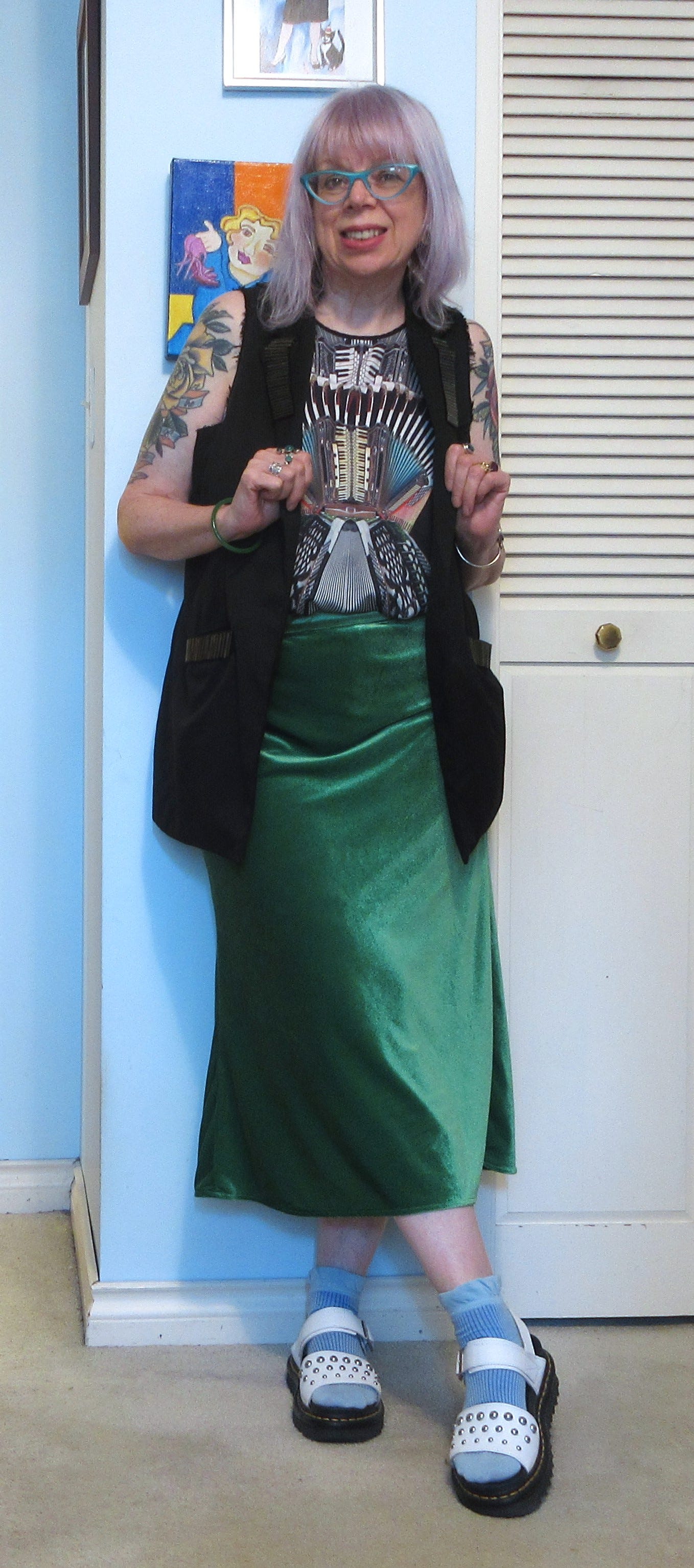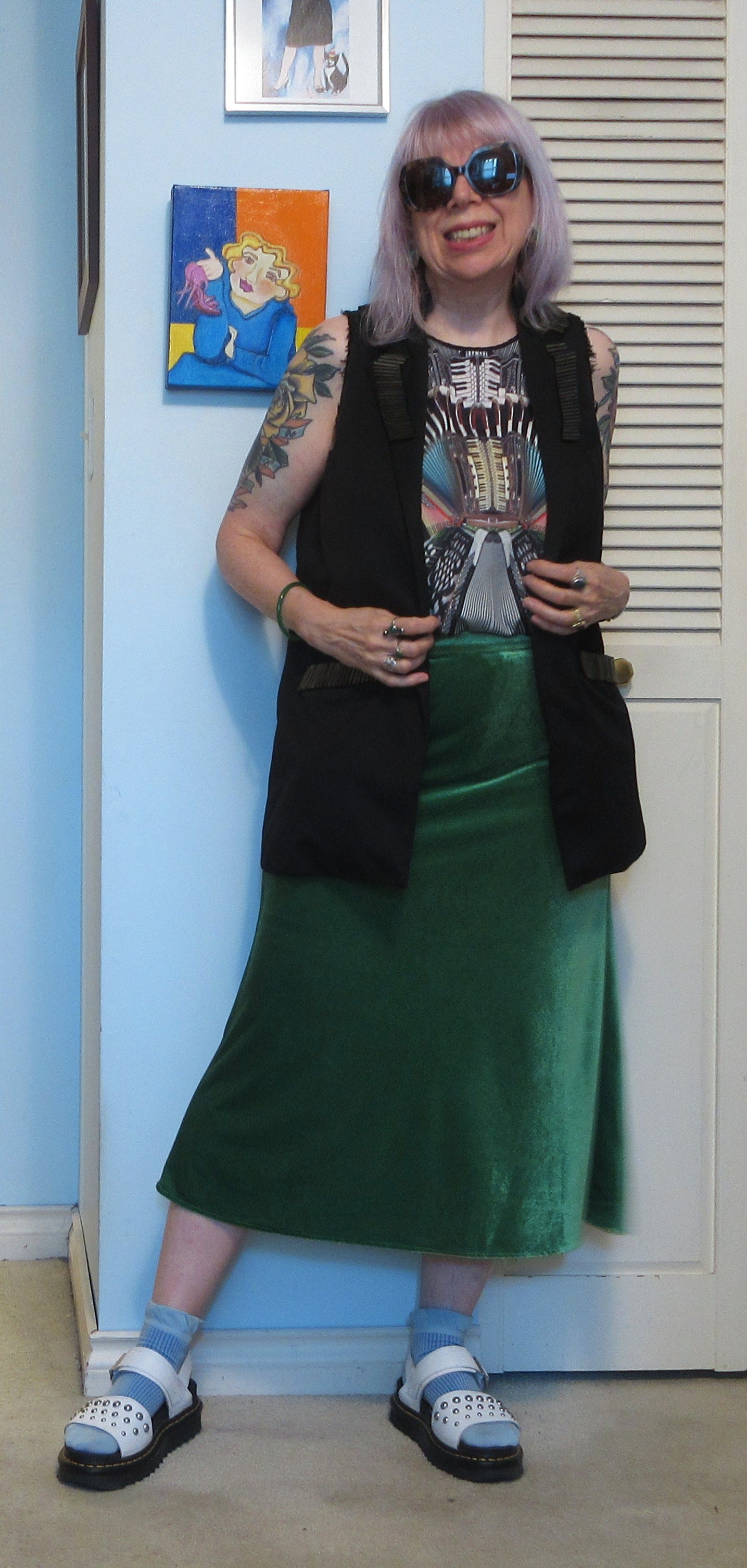 I have never shied away from wearing “out there” things to work. I wore a bustier on my very first day of my current job, 14.5 years ago5! I have been so fortunate to work in an environment where I can be tattoos-out, and basically wear anything I want. I always strive to look appropriate for an office setting, of course, but there’s still a lot of room for creativity.