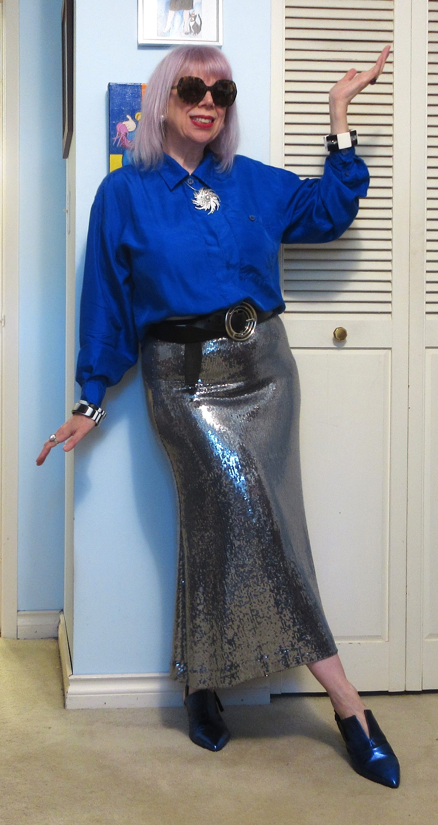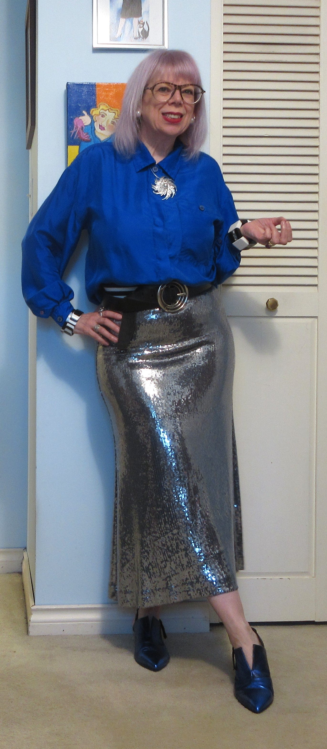 My colleagues admired my blue shirt on our Teams call, so of course I took off my shoe and waved it at the screen. As they were reeling from my Cobalt Awesomeness, I then stood up and showed them that I was wearing sequins2. What’s office appropriate? Sequins, duh!